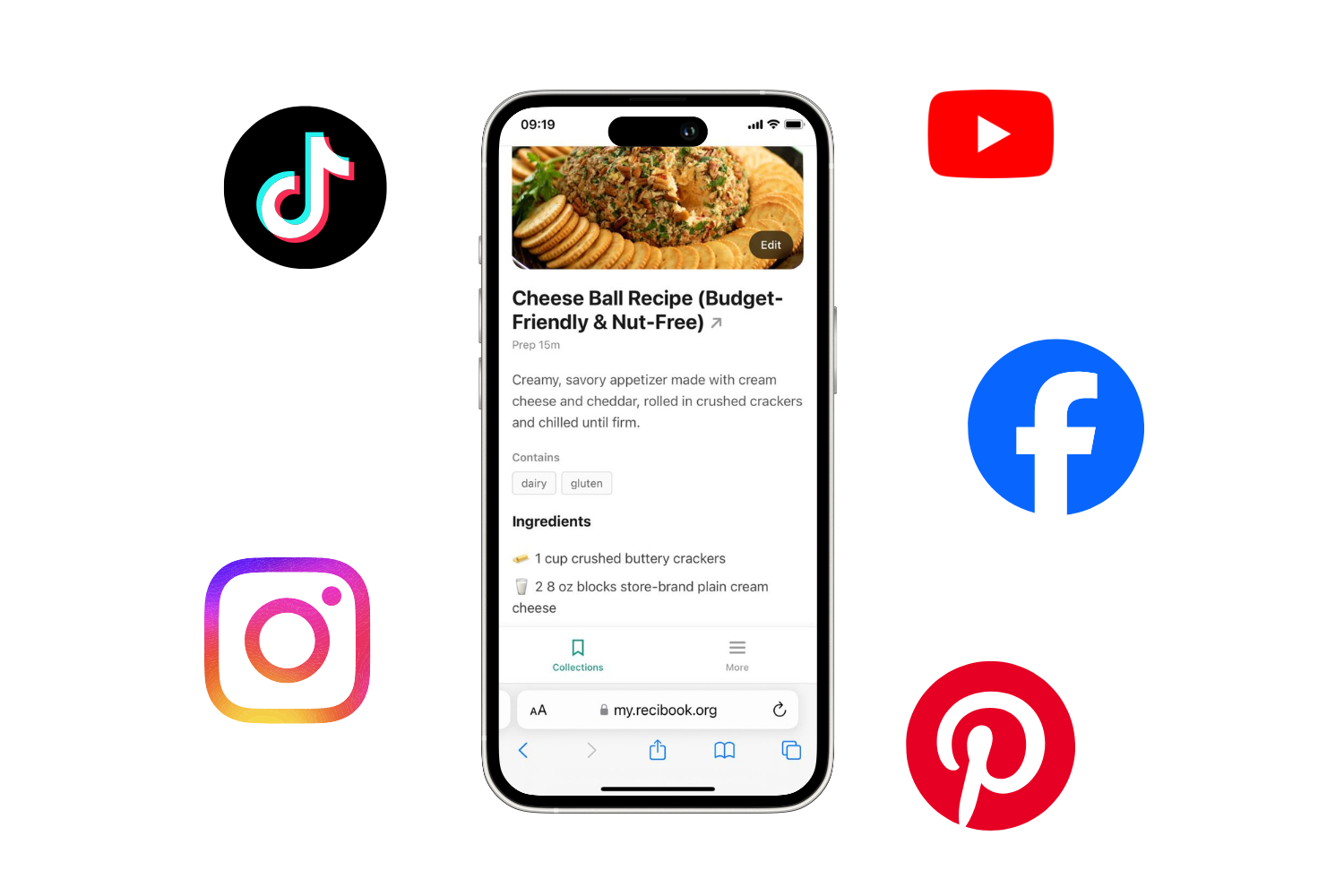 Import recipes from TikTok, Instagram, Facebook, Pinterest, YouTube—even screenshots from your grandma’s cookbook.