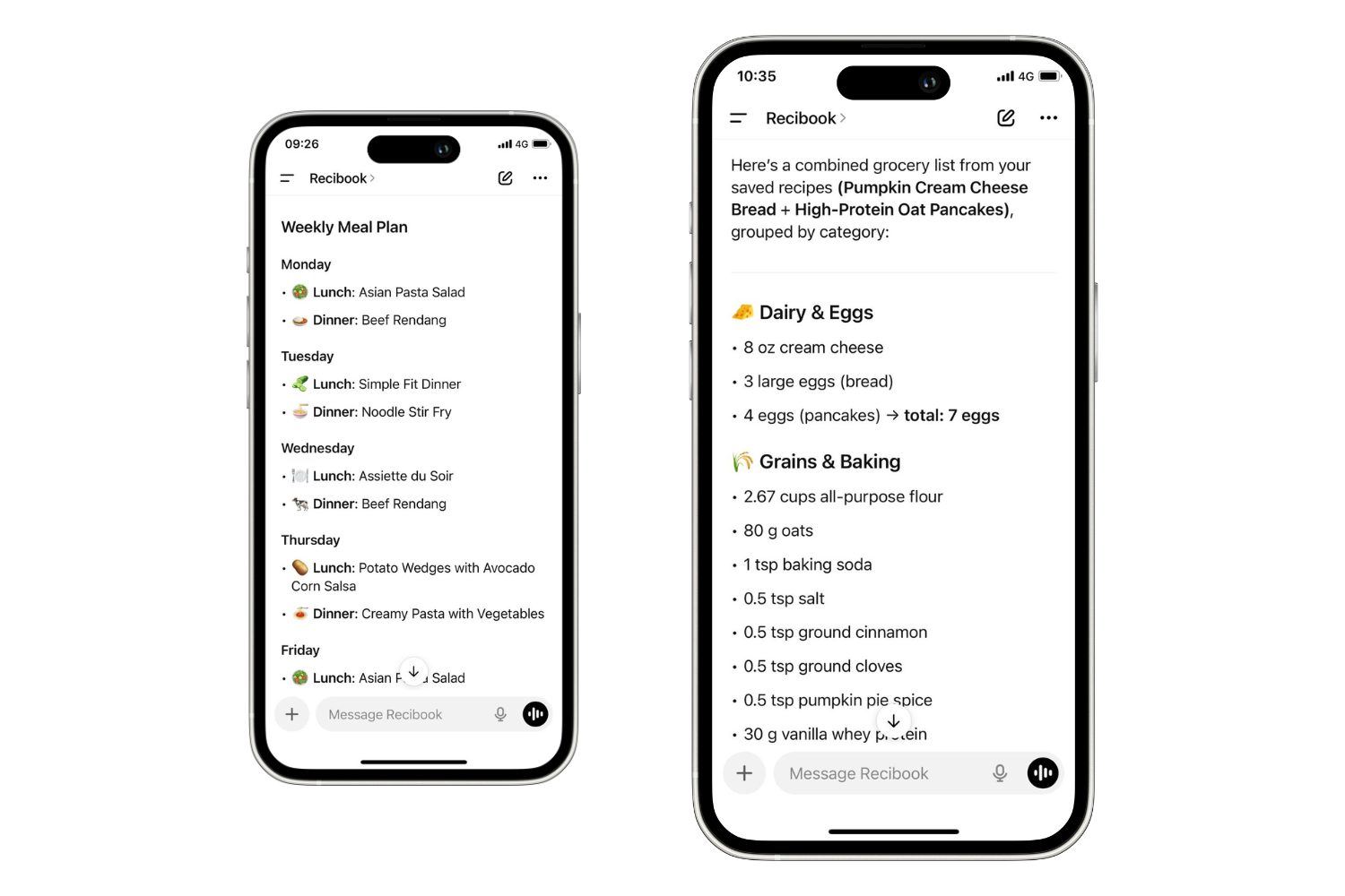 Ask Recibook to find, adapt, or plan meals. It’s like chatting with your personal recipe assistant.